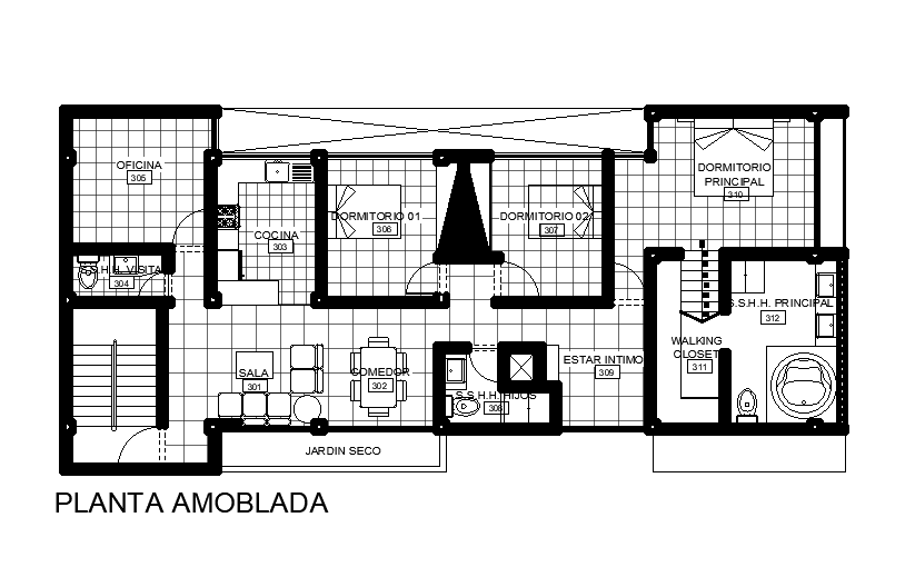 Autocad house plan CAD drawing shows space planning in plot size 200 square meter floor plan has been designed as spacious 3 bedrooms, master bathrooms, kitchen, office, dining area and living room with all furniture detail DWG file. Thank you for downloading the AutoCAD file and other CAD program from our website.