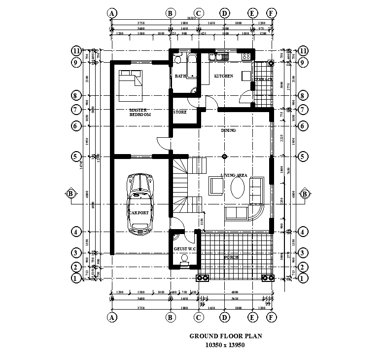 10x15m ground floor house plan is given in this Autocad drawing file. This is G+1 house plan. This ground floor consists of car port, guest water closet, porch, living area, dining hall, store room, kitchen and master bedroom with attached toilet. For more details download the Autocad file. Thank you for downloading the AutoCAD drawing file and other CAD program files from our website.
