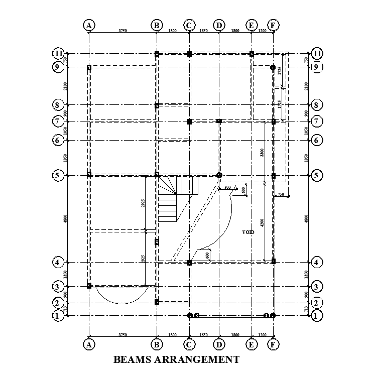 Beams Arrangement for 10x15m House Plan in AutoCAD File
