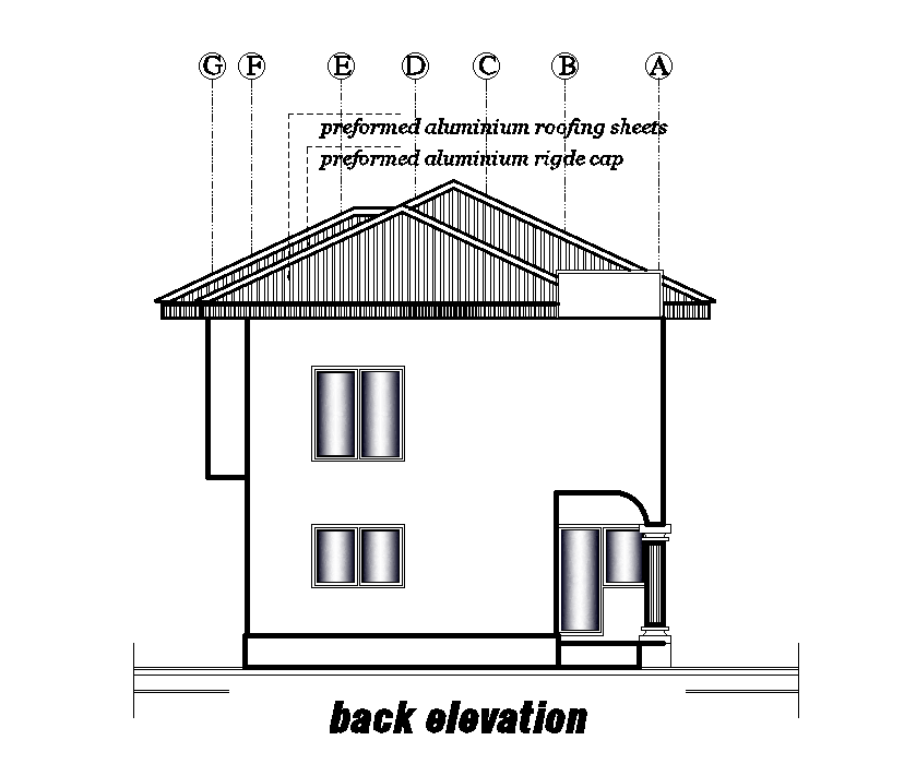 Back elevation of 8x19m house plan is given in this Autocad drawing file. Download now.