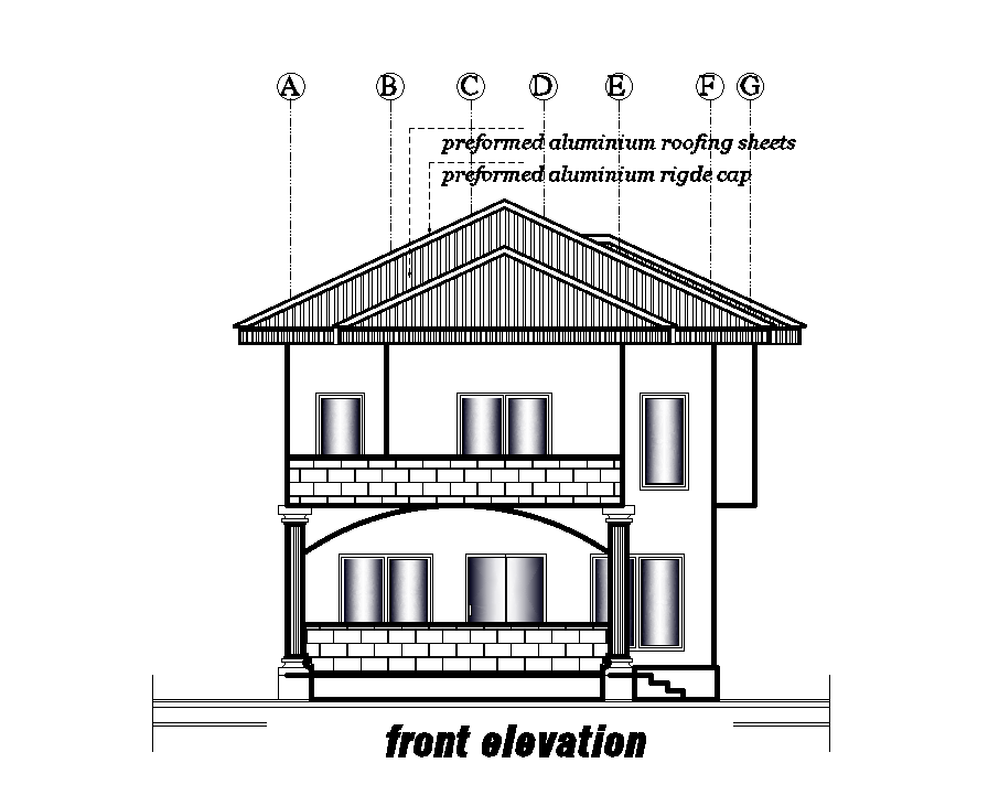 Front elevation of 8x19m house plan is given in this Autocad drawing file. Download now.