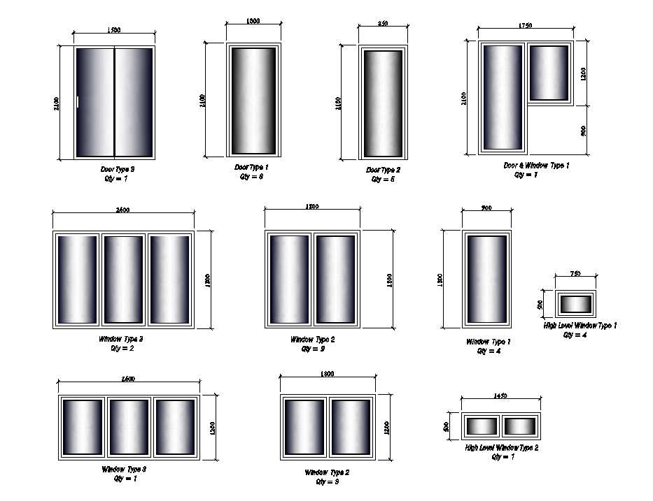 Windows and door detail for 8x19m house plan is given in this Autocad drawing file. In these drawing 3 doors, 7 windows plan and 1 door cum windows are given. For more details download the Autocad file. Thank you for downloading the AutoCAD drawing file and other CAD program files from our website.