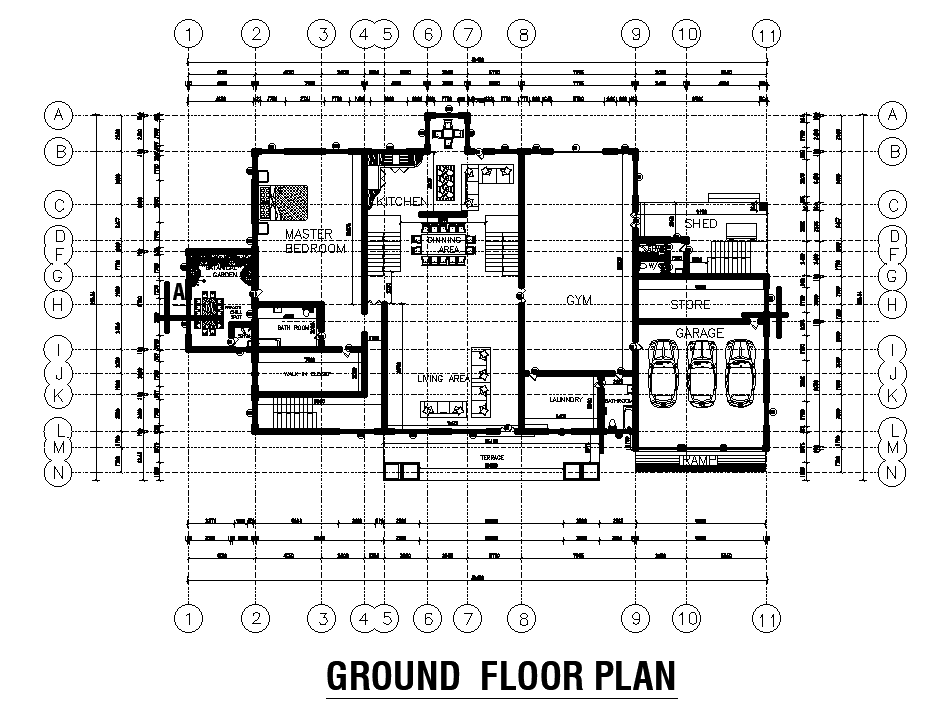 40x26m ground floor house plan is given in this Autocad drawing file. This is G+1 house plan. This ground floor consists of garage, shed with attached water closet, gym, laundry, common toilet, store room, living area, dining hall, store room, kitchen corridor and master bedroom with attached toilet. For more details download the Autocad file. Thank you for downloading the AutoCAD drawing file and other CAD program files from our website.