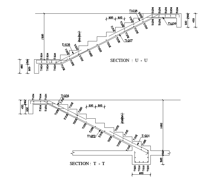 A staircase section of 9x12m residential plan is given in this Autocad drawing file. This is G+1 house plan. The length and breadth of the staircase is 2.7m and 2.3m respectively. Reinforcement details are given in this drawing. For more details download the Autocad file. Thank you for downloading the AutoCAD drawing file and other CAD program files from our website.