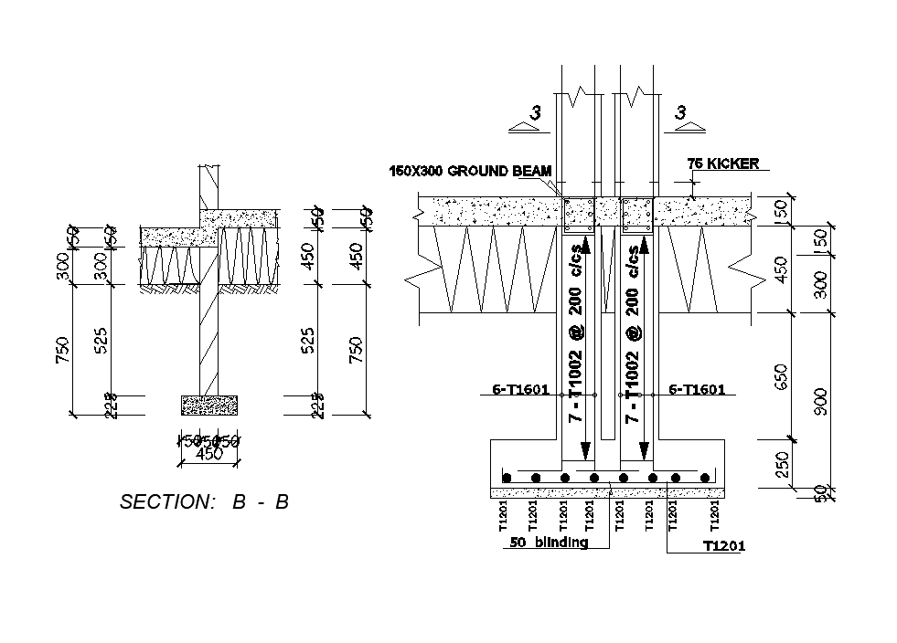 A section view of footing 9x12m residential plan is given in this Autocad drawing file.Download now.