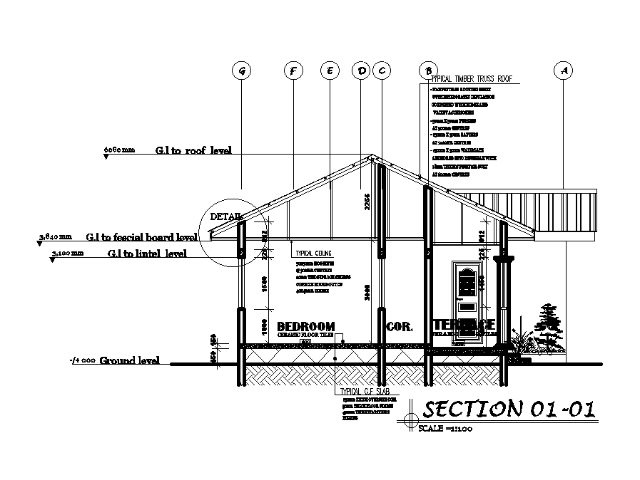 Front section view of 16x10m house plan is given in this Autocad drawing file. This is single story building. This ground floor consists of living area, dining area, terrace, kitchen, garden, corridor, store room, master bedroom with attached toilet, kid’s room with attached bathroom & water closet. For more details download the Autocad file. Thank you for downloading the AutoCAD drawing file and other CAD program files from our website.