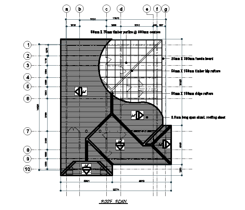 Roof plan of 12x14m house plan is given in this Autocad drawing file.Download now.