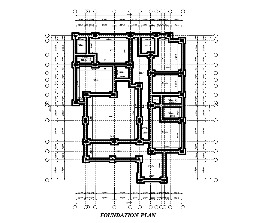 Foundation plan of 15x21m house plan is given in this Autocad drawing fileDownload now.