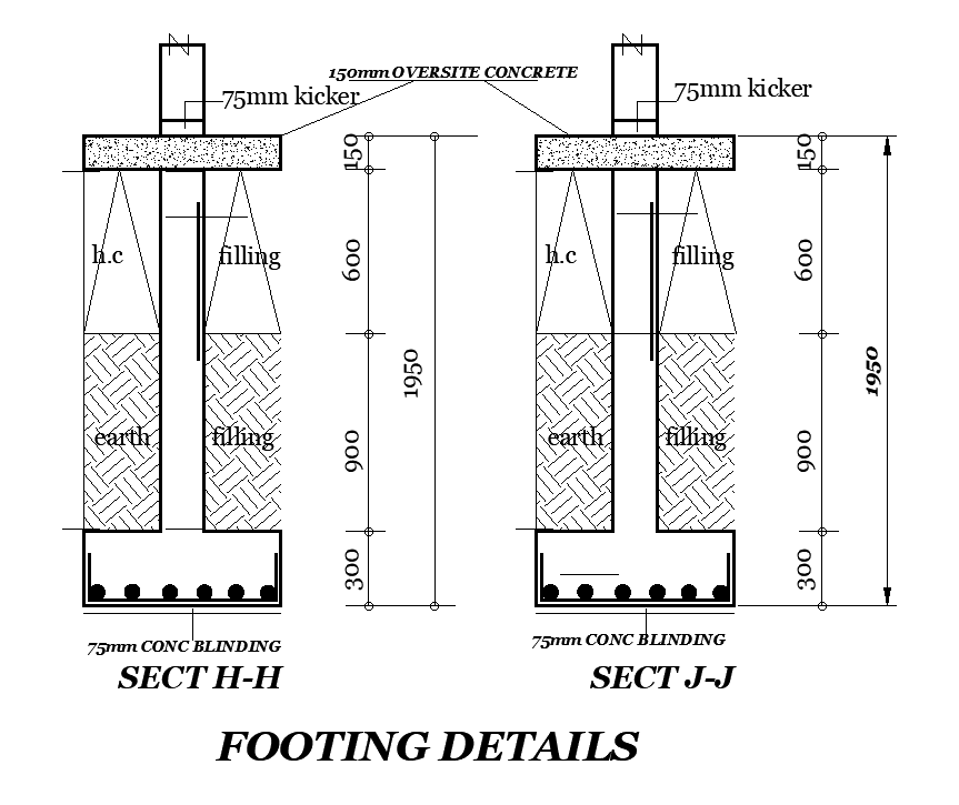 Footing details of 15x21m house plan is given in this Autocad drawing file. This is G+1 residential building. This drawing is given with footing cum column. The height of footing is 1.95m. For more details download the Autocad file. Thank you for downloading the AutoCAD drawing file and other CAD program files from our website.