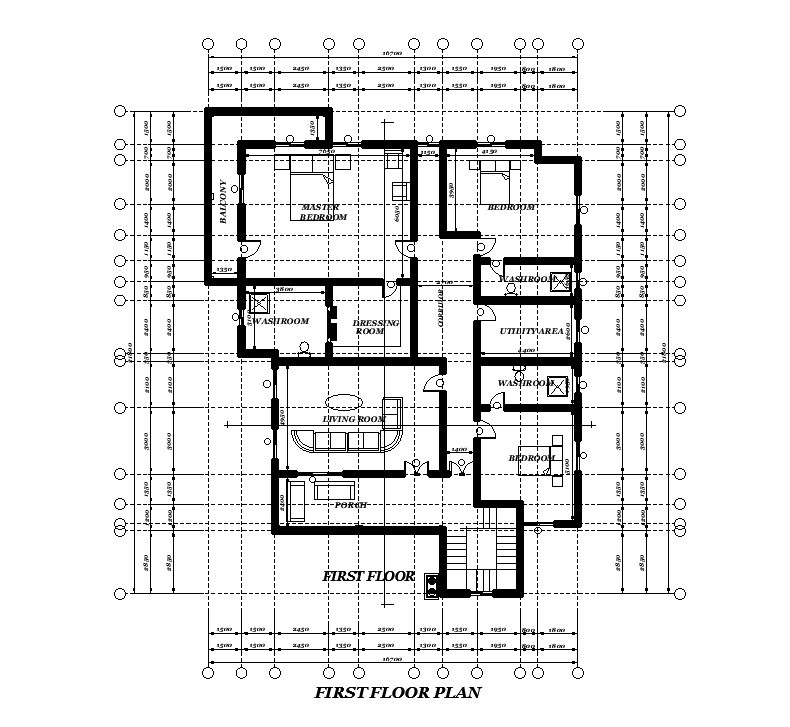 The dimension detail of first floor of 15x21m first floor house plan is given in this Autocad drawing file. This is G+1 residential building. Living area, porch, master bedroom with attached toilet & dressing room, kid’s room with wash room, guest room with wash room, and utility area are available in the first floor. For more details download the Autocad file. Thank you for downloading the AutoCAD drawing file and other CAD program files from our website.