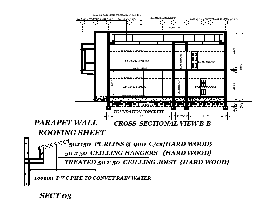 Cross view of 15x21m house plan is given in this Autocad drawing file. This is G+1 residential building. Living area, porch, master bedroom with attached toilet & dressing room, kid’s room with wash room, guest room with wash room, and utility area are available in the first floor. For more details download the Autocad file. Thank you for downloading the AutoCAD drawing file and other CAD program files from our website.