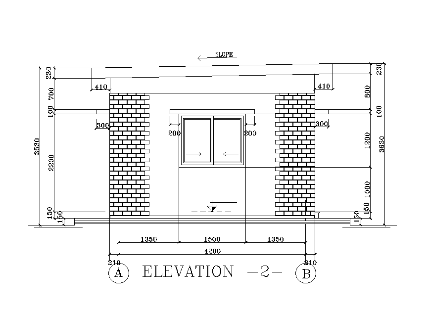Front elevation of the brick work of guard room building is given in this Autocad drawing file. The height of the building is 3.6m. Door, windows, and measurement details are given in this drawing model. For more details download the Autocad drawing file. Thank you for downloading the Autocad drawing file and other CAD program files.