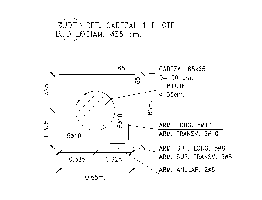Head pilot detail of guard room is given in this Autocad drawing file. The dimension of pilot is 0.65x0.65m. The length and breadth of the building is 9m and 5m respectively. For more details download the Autocad drawing file. Thank you for downloading the Autocad drawing file and other CAD program files.