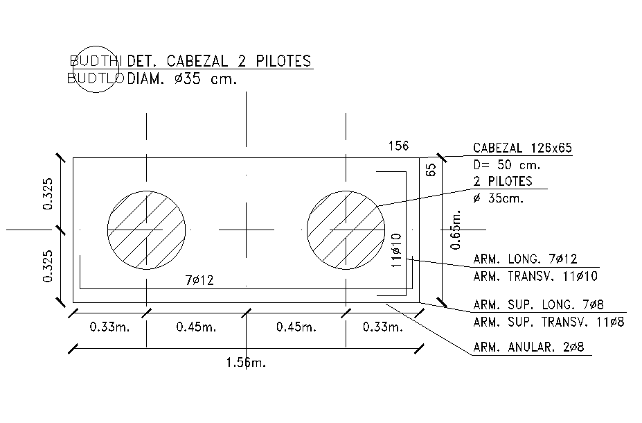 Two Head pilot detail of guard room is given in this Autocad drawing file. The dimension of pilot is 1.56x0.65m. The length and breadth of the building is 9m and 5m respectively. For more details download the Autocad drawing file. Thank you for downloading the Autocad drawing file and other CAD program files.