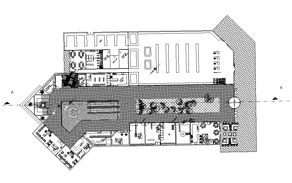 Shopping complex second floor plan is available in this Autocad drawing file.Download now.