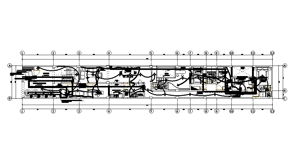 Electrical layout of 40x5m apartment layout is given in this Autocad drawing file. Download now.