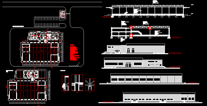 Industrial Plant AutoCAD Drawing with Plan, Elevation and Section