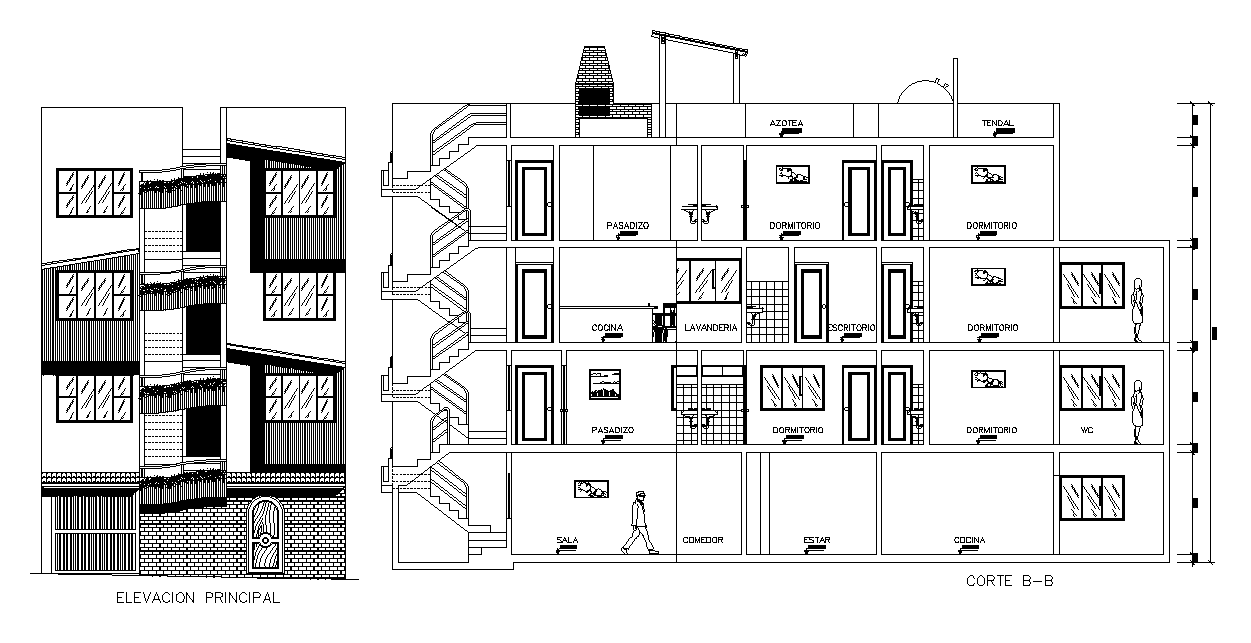 A section view of the G+3 house building is given in this Autocad drawing file. Download now.
