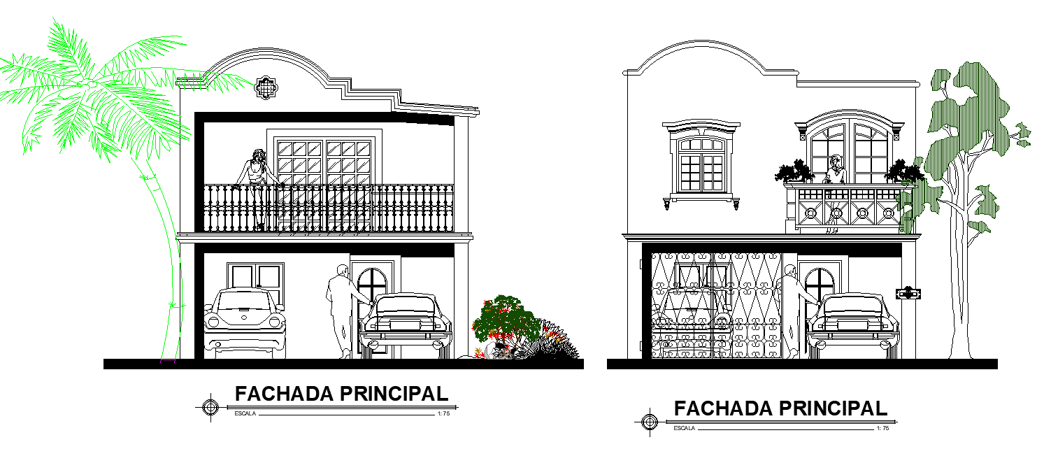 An elevation of 3BHK house plan is given in this Autocad drawing file. This is G+1 house plan. In the ground floor kitchen, bar, dining area, alacena, living area, lavanderia, and double garage are available. In the first floor, master bedroom with attached toilet, guest room with attached bathroom, kid’s room with attached toilet, living area and common toilet is available. Other details are given in this model. Download the 2D Autocad DWG drawing file. Thank you for downloading the Autocad file and other CAD program files from our website.