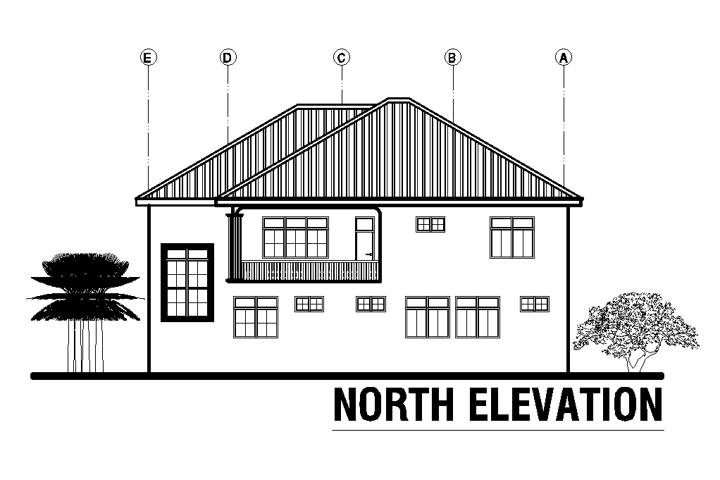 North side elevation of 16x13m house plan is given in this Autocad drawing file.Download now.