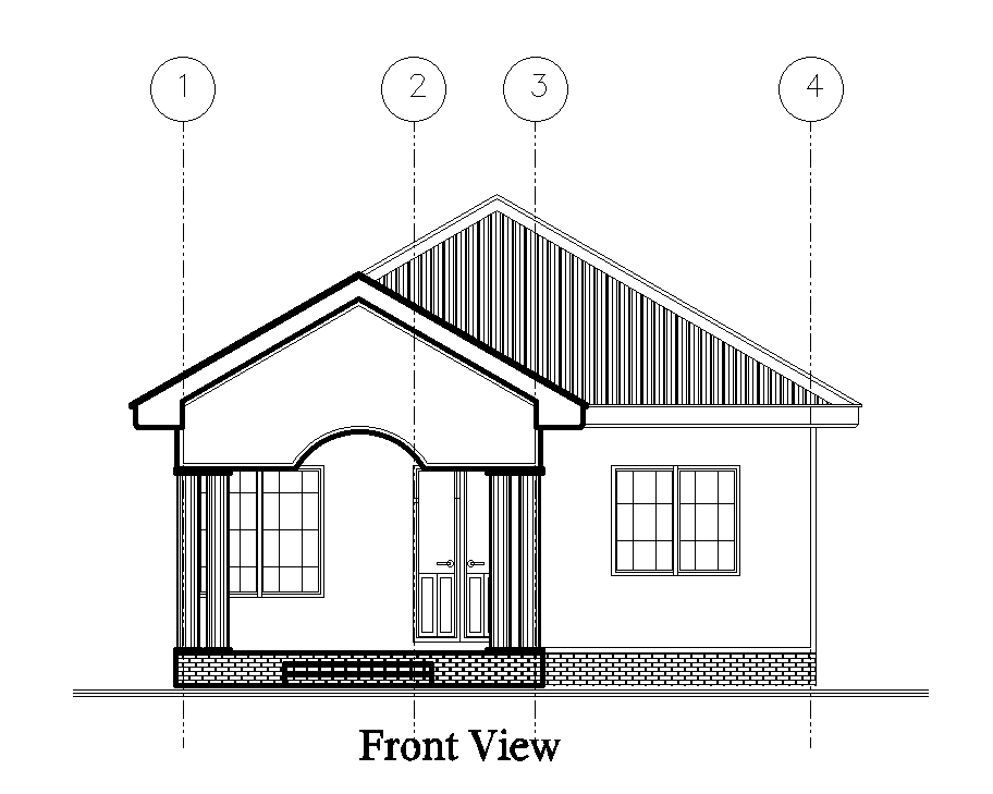 Front view of 9x11m ground floor house plan is given in this Autocad drawing file.Download now.