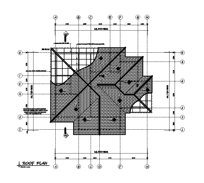 Roof plan of 12x13m ground floor house plan is given in this Autocad drawing file.Download now.