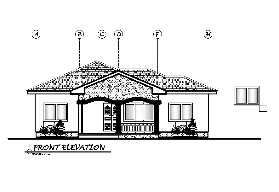 Front elevation of 12x13m ground floor house plan is given in this Autocad drawing file.Download now.