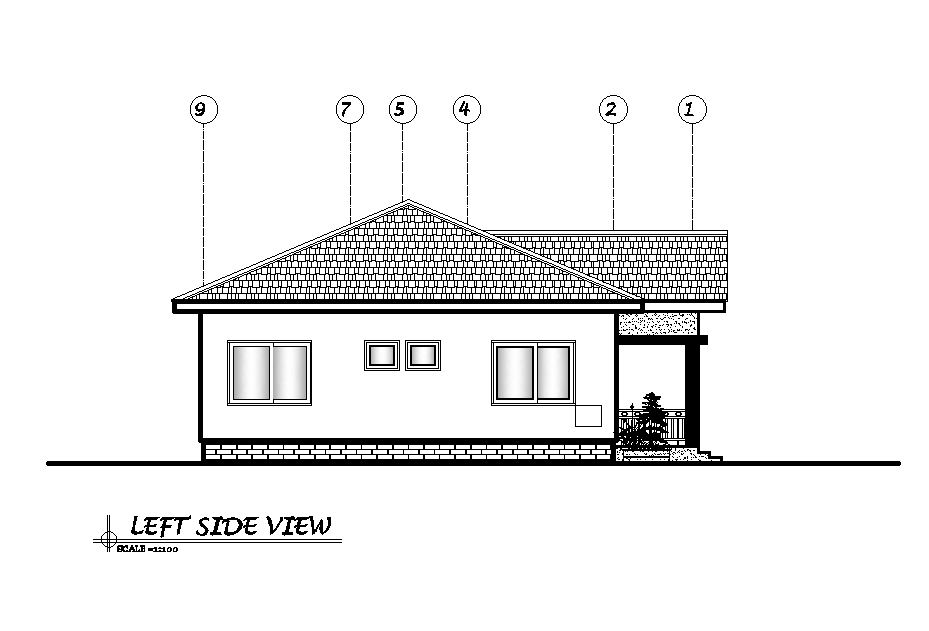 Left side view of 12x13m ground floor house plan is given in this Autocad drawing file. Download now.