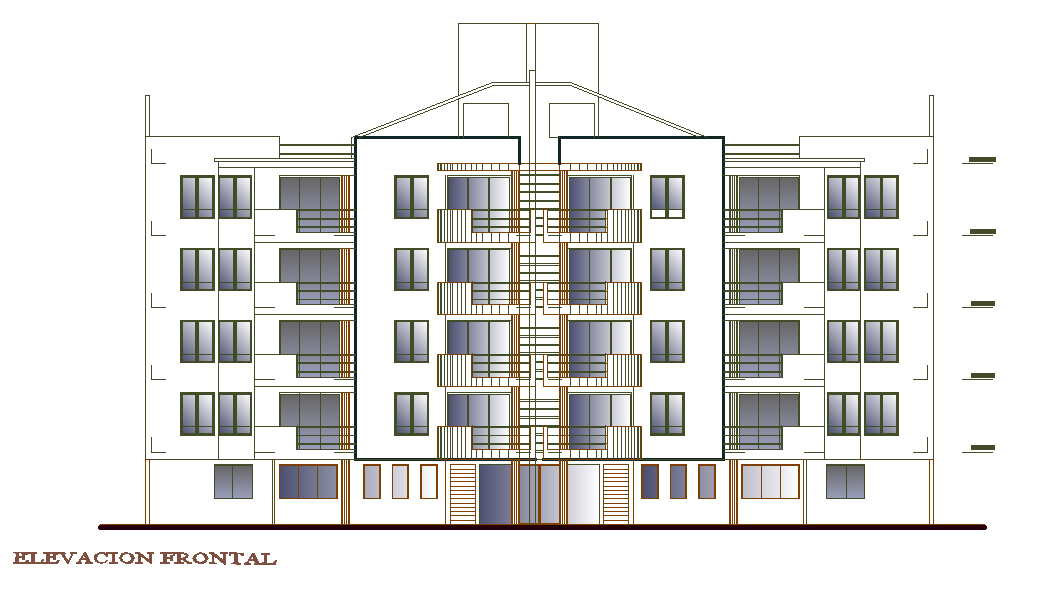 An elevation of 27x26m apartment site layout with house plan is given in this Autocad drawing file. This is G+4 apartment building. In each floor six houses are available. In this plan master bedroom with attached toilet, kid’s room, living area, kitchen, dining hall, common toilet, and guest room is available. For more details download the Autocad DWG drawing file. Thank you for downloading the Autocad drawing file and other CAD program files from our website.