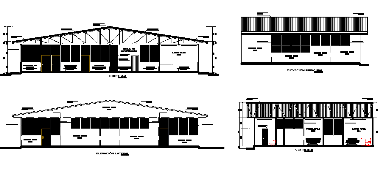 Section & elevation of the house building is given in this Autocad drawing file.Download now.