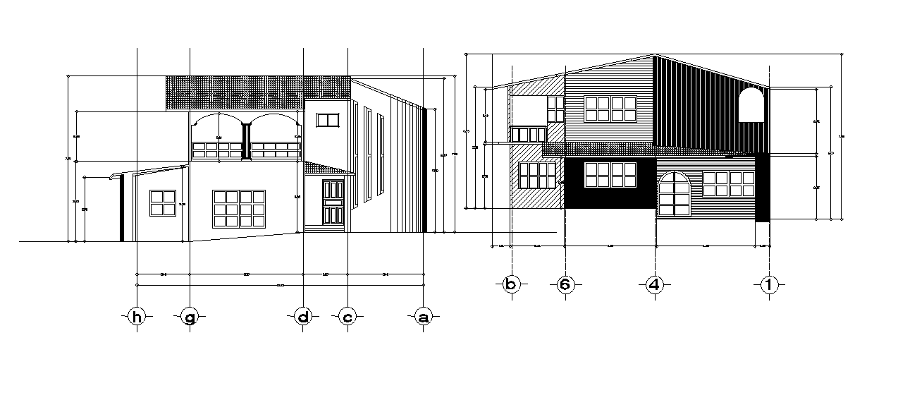 An elevation view of 15x10m luxury villa plan is given in this Autocad drawing file.Download now.
