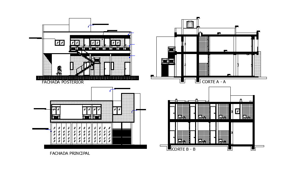 Section and elevation view of Club house layout is given in this Autocad drawing file. Download now.