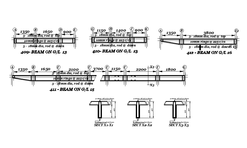 Beam details and section view is given in this Autocad drawing file. In this file, 9 drawings are given. Length and reinforcement details are given in this model. For more details download the Autocad drawing file. Thank you for downloading the Autocad drawing file and other CAD program files from our website.