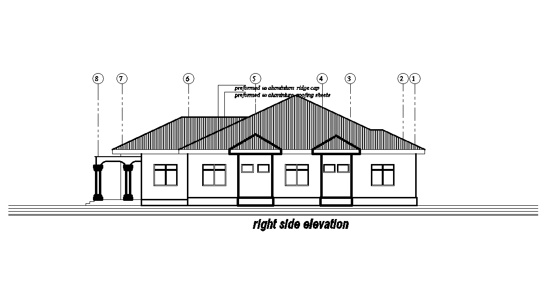 Right side elevation of 24x25m office plan is given in this Autocad drawing file. Download now.