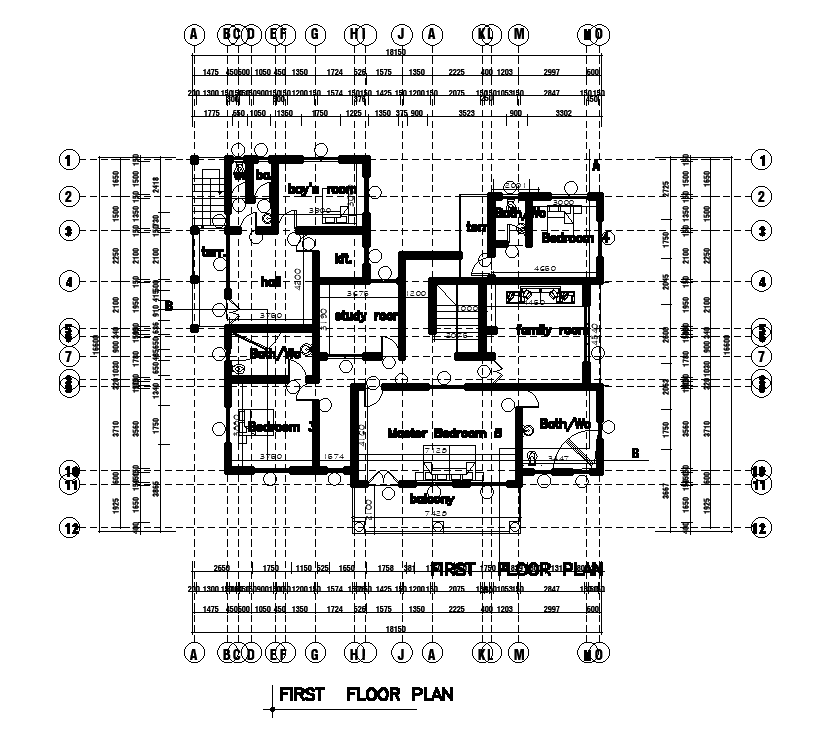 18x17m first floor house plan is given in this Autocad drawing file.Download now.