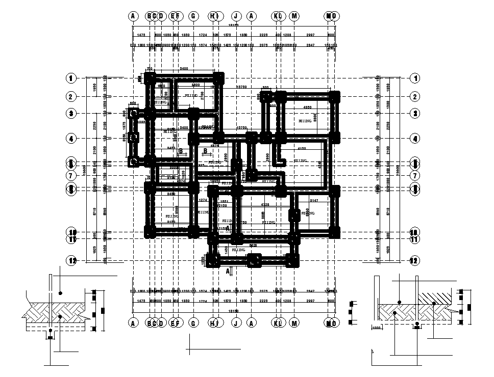 Foundation layout of 18x17m house plan is given in this Autocad drawing file. Download now.