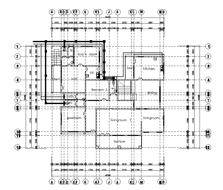 Plumbing layout of ground floor 18x17m house plan is given in this Autocad drawing file. This is G+1 house building. Living area, family area, kitchen, corridor, entrance, common water closet, lobby, master bedroom, boy’s room, guest room is available. For more details download the Autocad drawing file. Thank you for downloading the Autocad drawing file and other CAD program files from our website.