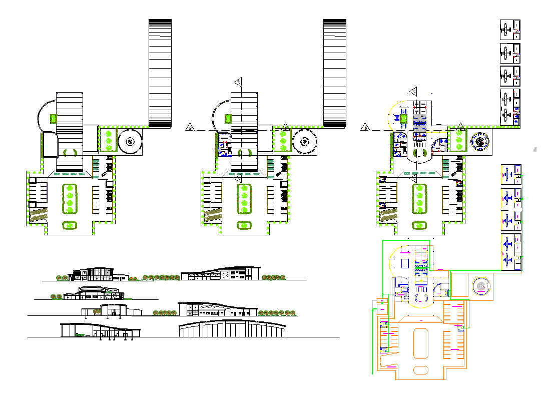 Helipad Dimensions drawings. control room, administration, locales, services, Unloading, control tower, Public parking, Bus parking