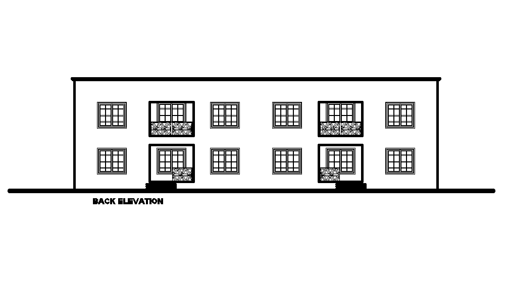 Back view of 23x13m twin house plan is given in this Autocad drawing file. Download now.
