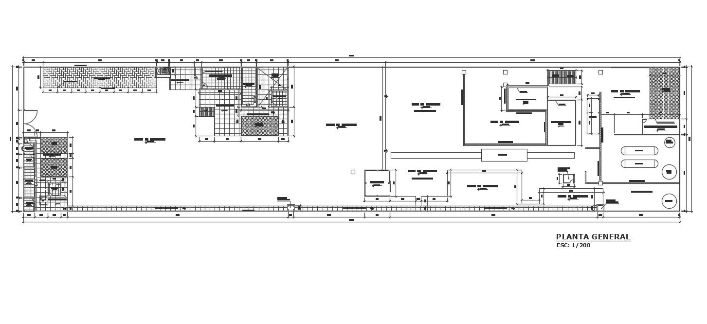 The architecture office ground floor plan for 170X38 meter plot size which includes concrete slab, reception of material prima, maneuvering yard, electric sub station, solid waste warehouse, circulation area and wide empty open space with garden detail DWG file. Thank you for downloading the AutoCAD drawing file and other CAD program files from our website.