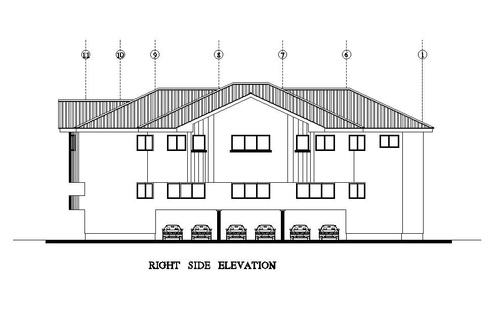Right side elevation of 32x16m ground floor church plan is given in this Autocad drawing file. This is G+2 church building. In this ground floor car parking, common water closet for male & female, equipment store, tool store and other details are given. In the first floor part of main auditorium, stage, band, drummer, meeting room, office room, common area, account room, pastor’s office, vestry and duct opening is available. In the second floor, stage, band, drummer, counseling room, gallery, and void is available. For more details download the Autocad drawing file. Thank you for downloading the Autocad drawing file and other CAD program files from our website.