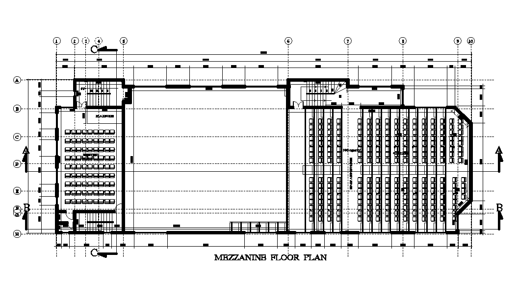 45x18m mezzanine floor church plan is given in this Autocad drawing file. This is G+2 church building. In this floor part of main auditorium, stage, office room, stage and meeting hall is available. For more details download the Autocad drawing file. Thank you for downloading the Autocad drawing file and other CAD program files from our website.