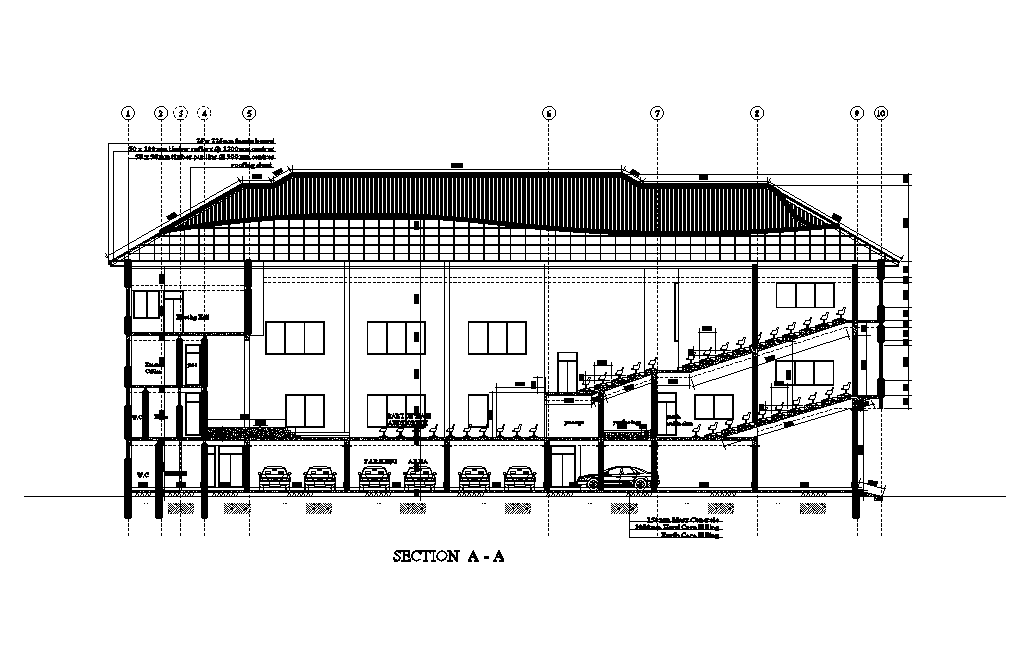 Front section view of 45x18m church plan is given in this Autocad drawing file. Total height of the church building is 19.5m. This is G+2 church building. In this ground floor car parking, common water closet for male & female, children’s service, multipurpose hall, folded partition, and other details are given. In the first floor part of main auditorium, stage, office room, common area, account room, band, youth church auditorium, youth church stage is available. In the second floor part of main auditorium, stage, office room, band, main part 1 church auditorium, and one more stage is available. In this floor part of main auditorium, stage, office room, stage and meeting hall is available. For more details download the Autocad drawing file. For more details download the Autocad drawing file. Thank you for downloading the Autocad drawing file and other CAD program files from our website.