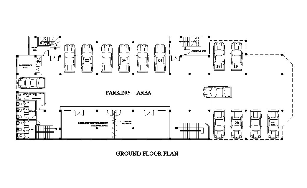 Layout of 45x18m ground floor church plan is given in this Autocad drawing file. This is G+2 church building. In this ground floor car parking, common water closet for male & female, children’s service, multipurpose hall, folded partition, and other details are given. For more details download the Autocad drawing file. Thank you for downloading the Autocad drawing file and other CAD program files from our website.