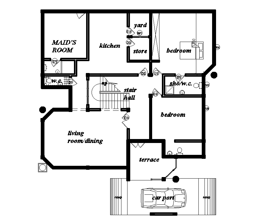 Luxury villa plan is given in this Autocad drawing file. This is G+1 villa building. Maid’s room, kitchen, bedroom , kitchen, kitchen yard, store room, living room, dining hall, master bedroom with attached toilet, car parking and common toilet is available. For more details download the Autocad drawing file. Thank you for downloading the Autocad drawing file and other CAD program files from our website.
