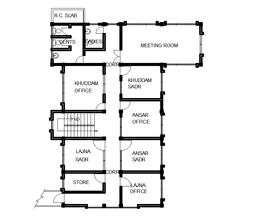 Small office building first floor plan is given in this Autocad drawing file. This is G+2 office building. In the first floor meeting room, store room, office cabins, toilet for gents & ladies and secretary room is available. For more details download the Autocad drawing file. Thank you for downloading the Autocad drawing file and other CAD program files from our website.