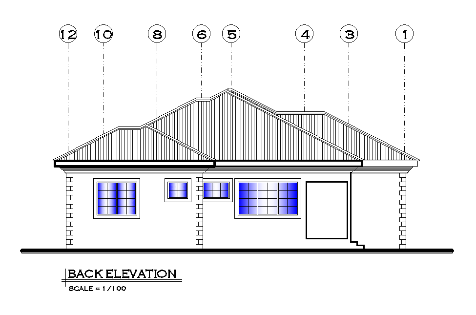 Back elevation of 15x17m house plan is given in this Autocad drawing file. This is single story house building. In the ground floor living area, common bathroom & water closet, master bedroom with attached bathroom & dressing room, kid’s bedroom, guest room with attached water closet, bedroom, kitchen, dining area and lobby is available. For more details download the Autocad drawing file. Thank you for downloading the Autocad drawing file and other CAD program files from our website.