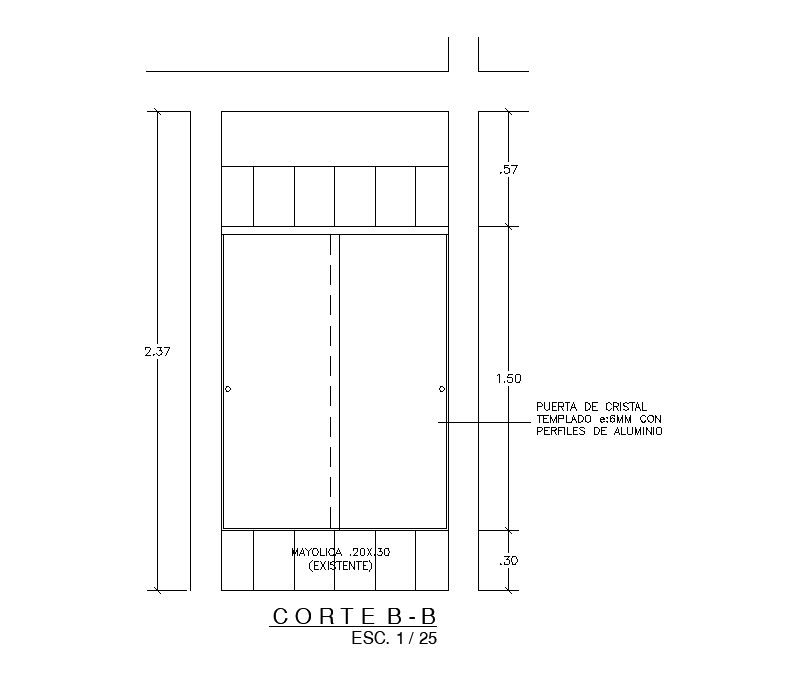 This AutoCAD DWG file provides a detailed 2.35×1.53 meter toilet plan with a B-to-B corte (section) view. The drawing shows accurate dimensions, fixture placements, wall sections, and structural details suitable for residential or commercial restrooms. Architects, interior designers, and engineers can use this file to visualize and plan efficient toilet layouts. It helps optimize space usage, ensures compliance with building codes, and supports precise project documentation. Compatible with AutoCAD and other CAD software, this file can be integrated into larger layouts or used independently as a design reference.