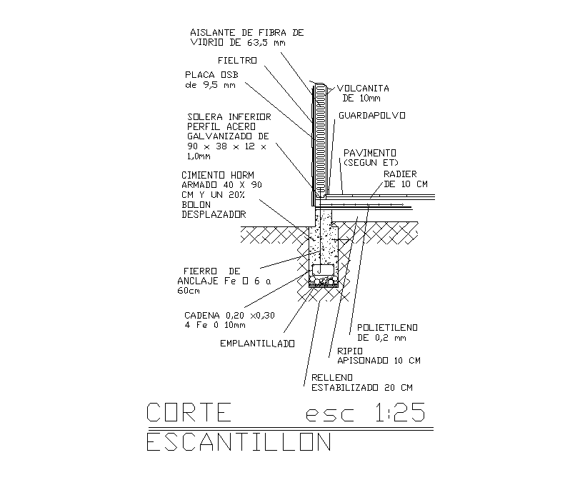 Section view of Structure component is given in this Autocad drawing file. Cornice is mentioned in this drawing model. Fiber glass insulator 89.0 mm, r8 for zone 3 thermal insulation without thermal bridges according to o.g.u. And c. Art 4.1.10, asphaltic shingle, felt, 40 mm omega costanera, vinil siding alero, vinil siding and other details are mentioned in this drawing. For more details download the Autocad drawing file. Thank you for downloading the Autocad file and other CAD program files from our website.