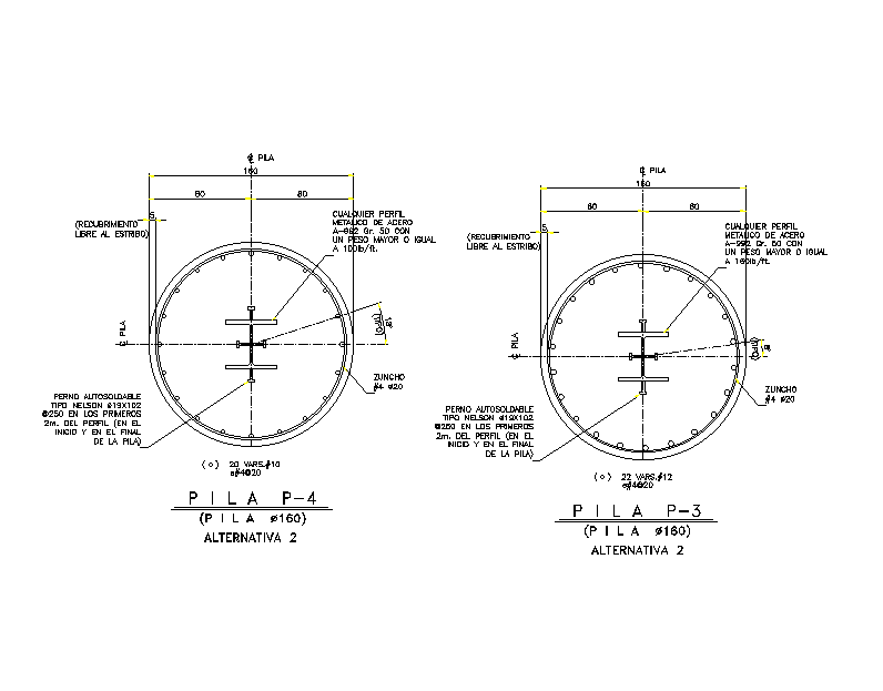 160mm diameter of Pile foundation plan is given in this Autocad drawing file. In this drawing there are two pile plans given. Covering details, measurement and other details are given in this drawing model. For more details download the autocad drawing file. Thank you for downloading the autocad file and other cad program files from our website.